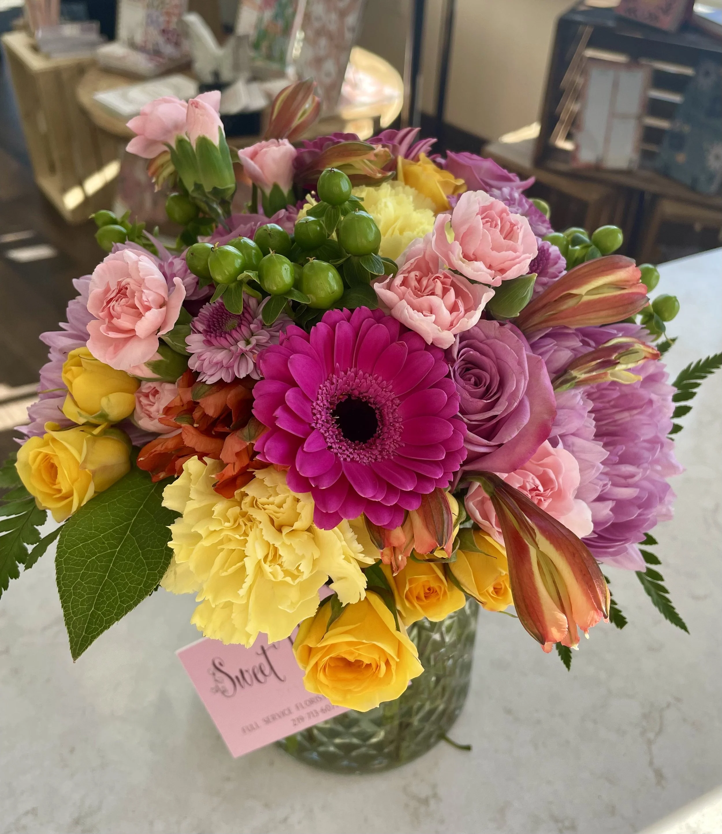Shop Flowers Categories: All Subscriptions School Dance Flowers Balloon Selection Balloon Package Options Happy Birthday Anniversary Baby! Congratulations Love, Thank, Miss you Get Well/Thinking of you Helium Surcharge Scale Flower Additions Happy Anniversary Sympathy You Make me Happy Get Well Spring Fun Baby! Gift Cards Happy Birthday All | Subscriptions | School Dance Flowers | Balloon Selection | Flower Additions | Bunco at Sweet Pea $5.00 Galentines Day Flower Centerpiece Workshop $50.00 Grow in Grace from $45.00 Artfully Arranged from $45.00 Empower one another from $45.00 Bold Radiance from $45.00 Sweet Sunset from $45.00 Meadow Glow from $45.00 Sunny Skies from $45.00 Farm Fresh Fun from $45.00 Sweet & Sassy from $45.00 Punch of Pastel from $45.00 She’s a Lady from $45.00 Prim & Peach from $45.00 Purple Glow from $45.00 Pink & Powerful from $45.00 Whisper of Beauty from $45.00 Vintage Angel from $45.00 Holiday Subscription $249.00 Presentation Bouquets from $45.00 12 Months of Flowers Subscription from $349.00 Sweetie Subscription from $199.00 Seasonal Smiles Subscription from $149.00 Mix Plant Sympathy Basket from $60.00 Lantern Sympathy Arrangement $85.00 Heart Wreath on Easel $235.00 Sympathy Garden Basket $75.00 Sympathy Wind Chime $25.00 Sympathy Wind Chime “Thought Away” $29.00 Sympathy Wind Chime “Light Shine” $29.00 Sympathy Pet Memorial Arrangement $75.00 Ceramic Angel $5.00 Lady Bug Sign $3.00 Bird Sign $3.00 Happy Birthday Message Stick $3.00 Oh Baby! Message Signs $3.00 Get Well Soon Message Stick $3.00 Love You Message Stick $3.00 It’s a Boy! Message Stick $3.00 It’s a girl! Message Stick $3.00 Mini Posey Bouquet $45.00 Get Well Message Stick $3.00 You Make Me Happy $3.00 Happy Anniversary message stick $3.00 Thinking of You message stick $3.00 Hand Held Bouquet $65.00 Large Hand Held Bouquet $85.00 Wrist Corsage $45.00 Boutonniere - Pinned $15.00 #1 Happy Birthday $6.50 #2 Happy Birthday $6.50 #3 Happy Birthday cupcakes $6.50 #4 Purple Happy Happy Birthday Balloon $6.50 #5 Happy Happy Birthday $6.50 #7 Happy Birthday $6.50 #8 Happy Birthday $6.50 #9 Happy Birthday Tulips $6.50 #6 Happy Birthday pink flowers $6.50 #10 Happy Birthday Flower $6.50 #12 Happy Bday Balloon $6.50 #11 Happy Birthday Heart $6.50 #15 Happy Birthday Heart $6.50 #16 Neon Happy Birthday $6.50 #20 happy Birthday donut theme $6.50 #22 Lego Birthday $6.50 #24 Sesame Street Birthday $10.00 #26 Disney Birthday $10.00 #31 PJ Masks Happy Birthday $10.00 #29 Jungle Themed Birthday $10.00 #27 Toy Story Themed Balloons $10.00 #30 Paw Patrol Birthday $10.00 #32 Marvel Avengers Happy Birthday $10.00 #33 Spider-Man Happy Birthday $10.00 #41 Too many Candles $6.50 #43 Sports Birthday $10.00 #47 Thank you! $6.00 #50 Welcome New Baby $6.50 #51 Congrats on your New Baby $6.50 #54 Baby Girl Balloon $6.50 #55 Baby Boy $6.50 #59 Happy Anniversary $6.50 #58 Happy Anniversary $6.50 #62 I love you balloon $5.00 #61 Love you! Balloon $5.00 #63 I love you gold Heart $5.00 #64 Congratulations $6.50 #66 Congratulations $6.50 #67 Congratulations $6.50 #68 Congrats $6.50 #70 Congratulations Star $6.50 #74 Good Luck $6.50 #76 You are the Best! $6.50 #84 Get Well Soon $6.50 #21 Wishing you - Birthday $6.50 #85 Get Well Soon Air Balloon $6.50 #42 Old Age Ahead $6.50 #44 Happy Birthday with numbers $6.50 #73 Rainbow Good Luck Balloon $6.50 #71 Happy Retirement Balloon $6.50 #75 Best Wishes Balloon $6.50 #86 Miss you Balloon $6.50 #77 Happy face balloon $5.00 #103 Big Sister Balloon $6.50 #102 Big Brother Balloon $6.50 #101 Get Well Soon Balloon $6.50 #100 Rainbow Feel Better Soon $6.50 #95 Colorful Birthday $6.50 #96 Happy Birthday Sports $10.00 #97 Peppa Birthday $10.00 #98 Cars themed Happy Birthday balloon $10.00 #99 Happy Birthday Winnie the Pooh $10.00 #91 Happy Birthday Cat themed $10.00 #93 Happy Birthday Ariel $10.00 #94 Happy Birthday Frozen theme $10.00 #87 Thank you Balloon $6.50 #89 For the best Grandma Balloon $6.50 #92 Happy Birthday Princess theme $10.00 #88 Best Mom Ever $6.50 #78 Thinking of you balloon (polka dot ) $6.50 #79 Thinking of you balloon (smiley) $6.50 #80 Thinking of you balloon (confetti) $6.50 Sold out #81 Thinking of you (lily) $6.50 #82 Thinking of you (tulips) $6.50 #83 Thinking of you balloon $6.50 #72 Happy Retirement Balloon $6.50 #65 Congratulations Balloon $6.50 #69 Way to go Grad Balloon $6.50 #60 I love you heart balloon $6.50 #52 It’s a girl Balloon $6.50 #53 Baby Girl $6.50 #47 Baseball Balloon $6.50 #56 it’s a baby boy balloon $6.50 #57 Baby Boy Stars $6.50 #45 Soccerball Balloon $6.50 #46 Basketball Balloon $6.50 #48 Football Balloon $6.50 #49 Volleyball Balloon $6.50 #39 Happy Birthday you’re the best $6.50 #34 Birthday Princess Crown Balloon $10.00 #37 Happy Birthday Princess $10.00 #35 Have a Magical Day Unicorn Balloon $10.00 #40 Rainbow Mermaid Happy Birthday $10.00 #38 Happy Birthday Unicorn $10.00 #36 happy birthday Mermaid $10.00 #28 Birthday Blast $10.00 #23 Minion Birthday $10.00 #25 Minnie Birthday $10.00 Package #2 from $13.50 #14 Happy Birthday Cupcake $6.50 #17 Classic Happy Birthday $6.50 #13 Happy birthday to you $6.50 #18 Fabulous Woman Happy Birthday $6.50 Large Weights $1.50 #19 happy Birthday butterflies & lilacs $6.50 Package #1 from $11.50 #90 Rainbow Happy Birthday $6.50 Weight Clips $0.50 Lots of Love from $45.00 Love on the Brain from $45.00 Be Mine. from $45.00 Forever Valentine. from $45.00